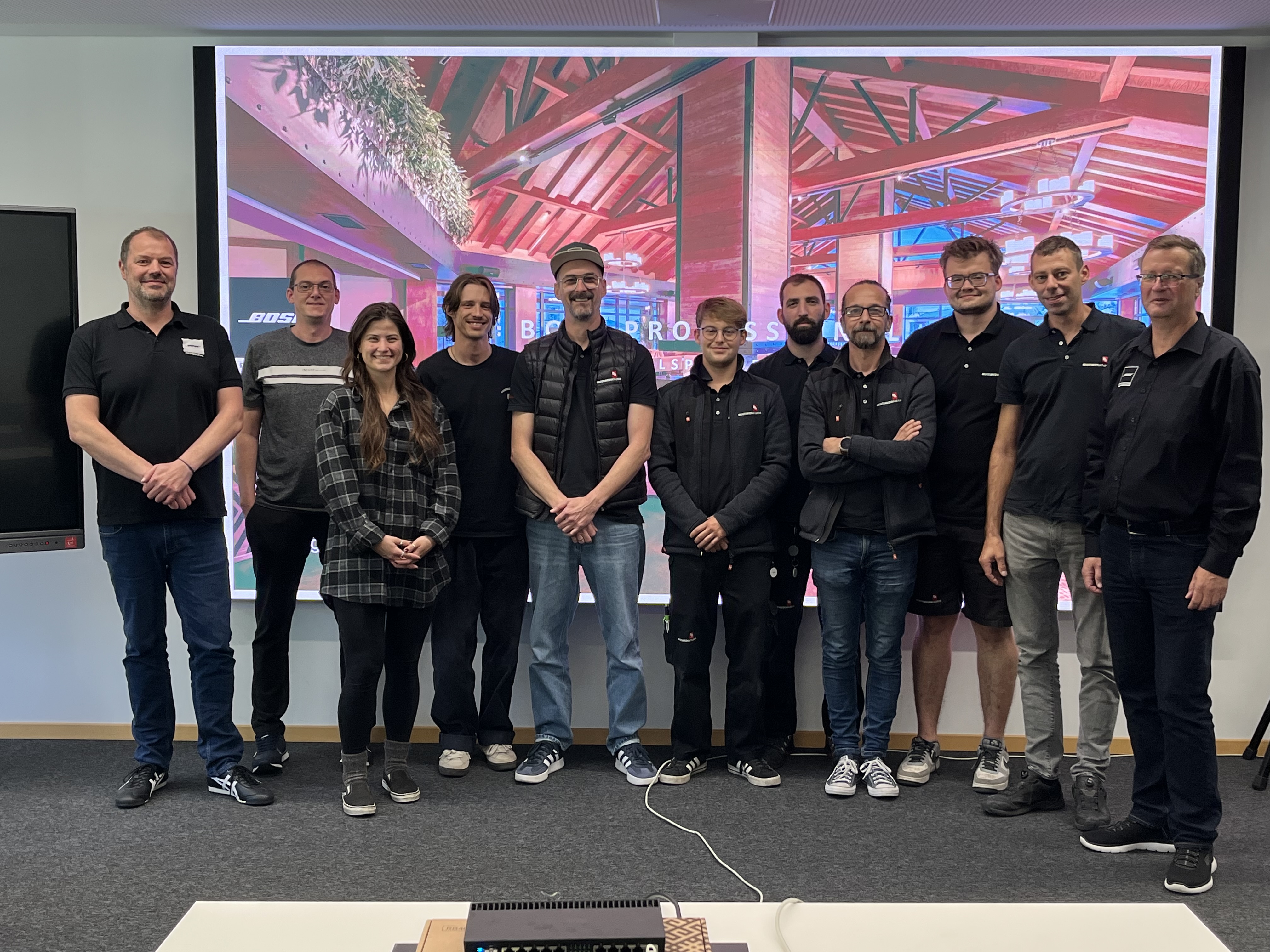 Unsere Techniker Serdar, Linus, Shawn, Marco, Anton und Zelimir waren begeistert und nahmen am Abend ihr wohlverdientes „BOSE Advanced Programmer Zertifikat“ entgegen. Damit können wir BOSE Systeme künftig noch besser, schneller und präziser einrichten. Das stärkt unsere Medientechnik-Kompetenz und schafft klare Vorteile für unsere Projekte und unsere Kundinnen und Kunden.