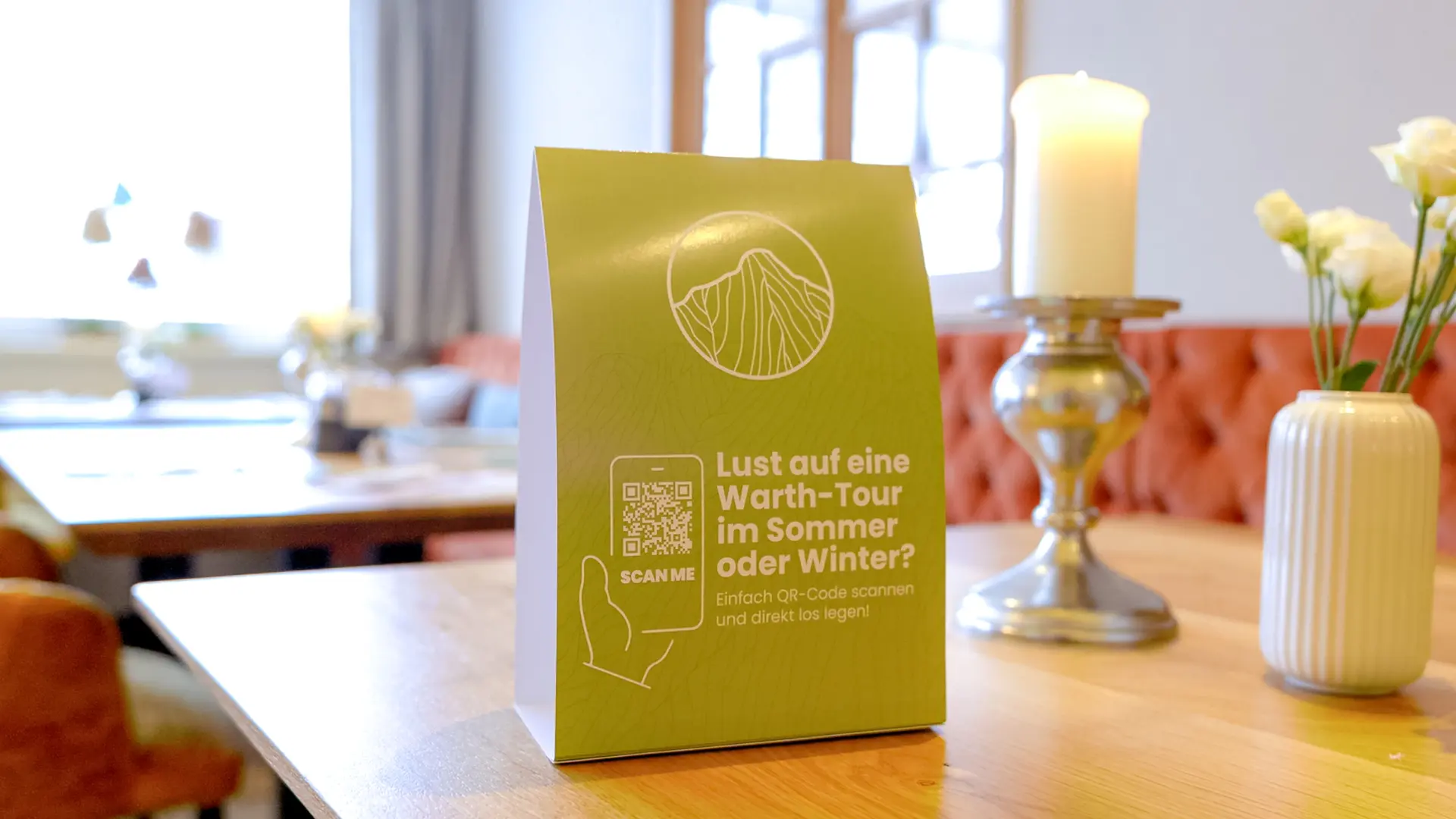 Um dieses digitale Erlebnis abzurunden, haben Clemens und Chiara aus unserer Digitalagentur die bestehende 360°-Wintertour gezielt erweitert. Das einladende Frühstücksbuffet wurde detailliert abfotografiert und nahtlos in den virtuellen Rundgang integriert. Flankierend dazu produzierten wir ein dynamisches Referenzvideo, das durch beeindruckende Drohnenaufnahmen während der Fahrt besticht. Ein besonderes Highlight der Umsetzung ist die Einbindung eines QR-Codes, der Interessenten direkt und ohne Umwege in die 360°-Touren führen.