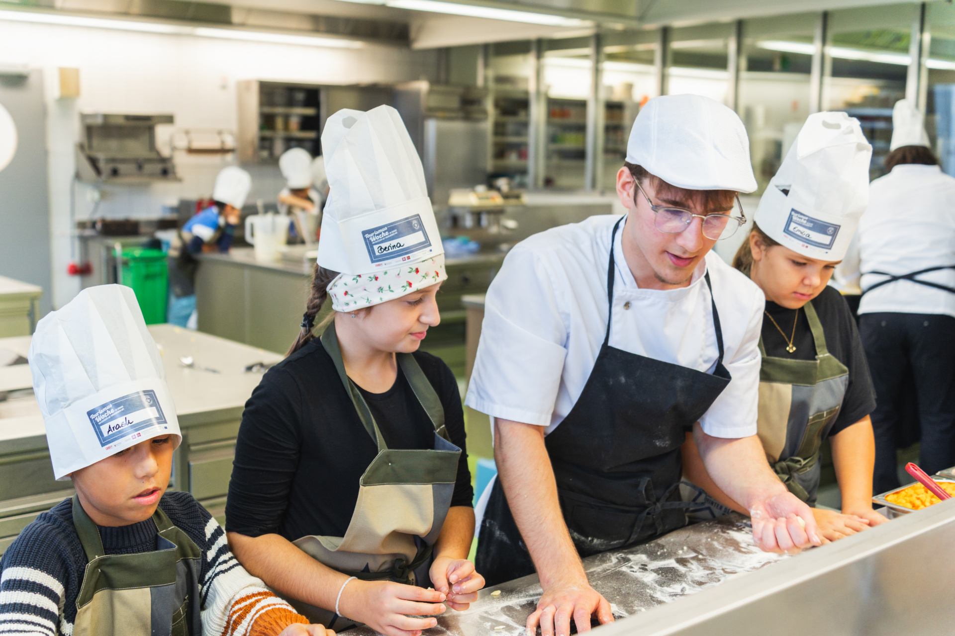 Vorarlbergs MINI-KÖCHE tauche in die Welt der Gastronomie ein! Im Rahmen der WKV Tourismuswoche wurden die Gewinner des Volksschul-Kreativwettbewerbs ausgezeichnet: die 4. Schulstufe der Volksschule Tosters! Die jungen Talente durften in der Landesberufsschule Lochau erste Erfahrungen als Köche und Gastgeber sammeln – von der Produktauswahl über die Gestaltung der Menükarte bis hin zum professionellen Service. Unter der Anleitung erfahrener Gastronomen sowie Tourismus-Lehrlingen und Schüler erhielten die Kinder spannende Einblicke in die Welt der Gastfreundschaft. Unser Team begleitete den Tag mit Video- und Fotoaufnahmen und hielt die Highlights dieses besonderen Erlebnisses fest.