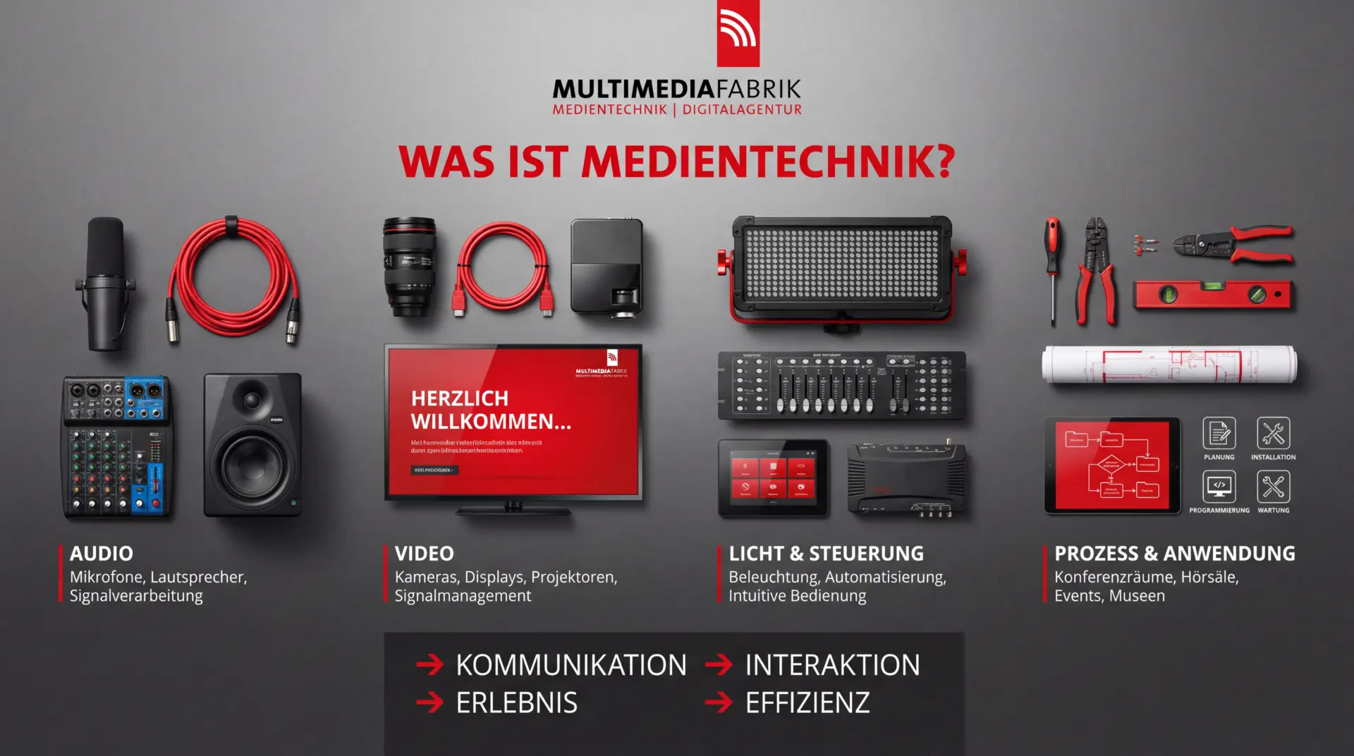 Seit mehr als 17 Jahren setzen wir Maßstäbe in der Medientechnik: mit klarer Struktur, viel Herzblut und einem hohen Anspruch an Qualität. Was uns antreibt? Der Moment, in dem alles funktioniert – und unsere Kund:innen staunen.